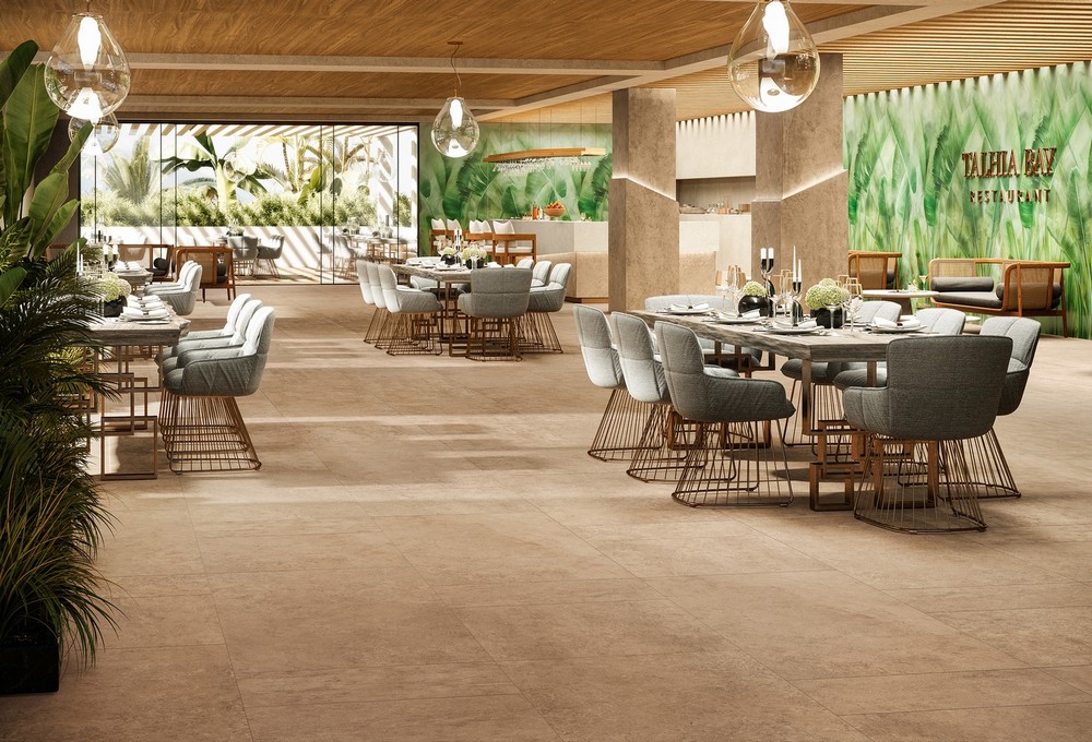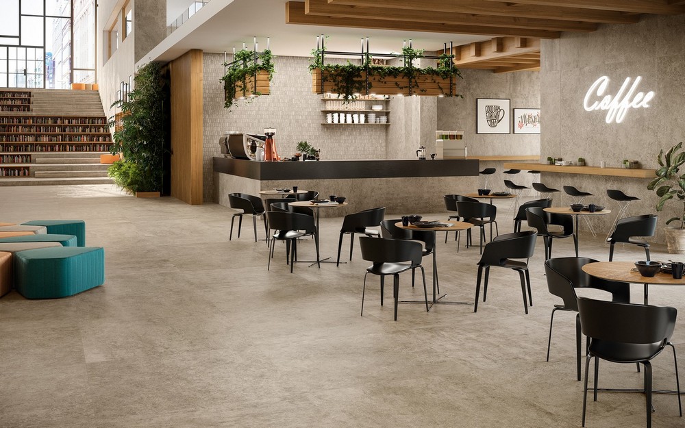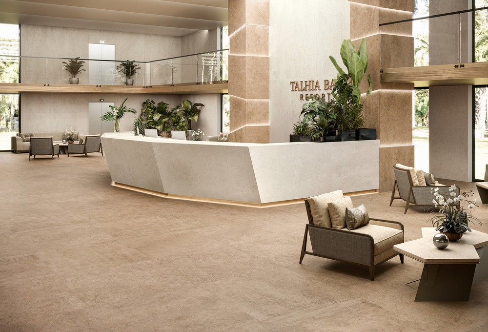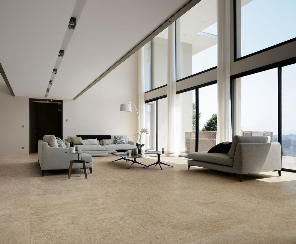 Для напольного покрытия доступны керамогранитные плитки различных размеров. Формат керамогранита с матовым покрытием составляет: 37,5×75 см, 75×75 см, 75×150 см, 120×120 см. Пористая керамика значительно предотвращает скольжение, не дает блики при любом освещении, понижает нагрузку на интерьер и зрение. Керамика с антислиповым покрытием имеет размер 37,5×75 см. Также коллекция включает изделия с фактурной поверхностью и дополнительным утолщением на 20 мм в двух размерах: 60×60 см и 60×120 см. Компания предлагает холст макси-формата 120×278 см и толщиной 6 мм для воплощения самых смелых и нестандартных вариантов дизайна. Большие пластины позволяют покрывать поверхности с меньшим количеством швов. Цветовая палитра керамогранита состоит из спокойных, универсальных цветов, таких как серый (Grey), бежевый (Beige), песочный (Desert) и слоновая кость (Ivory). Неоспоримыми преимуществами коллекции Atlas Concorde Lims являются высокая устойчивость к химикатам и механическим повреждениям, длительный срок службы и огнеупорность. Все изделия безопасны для здоровья.