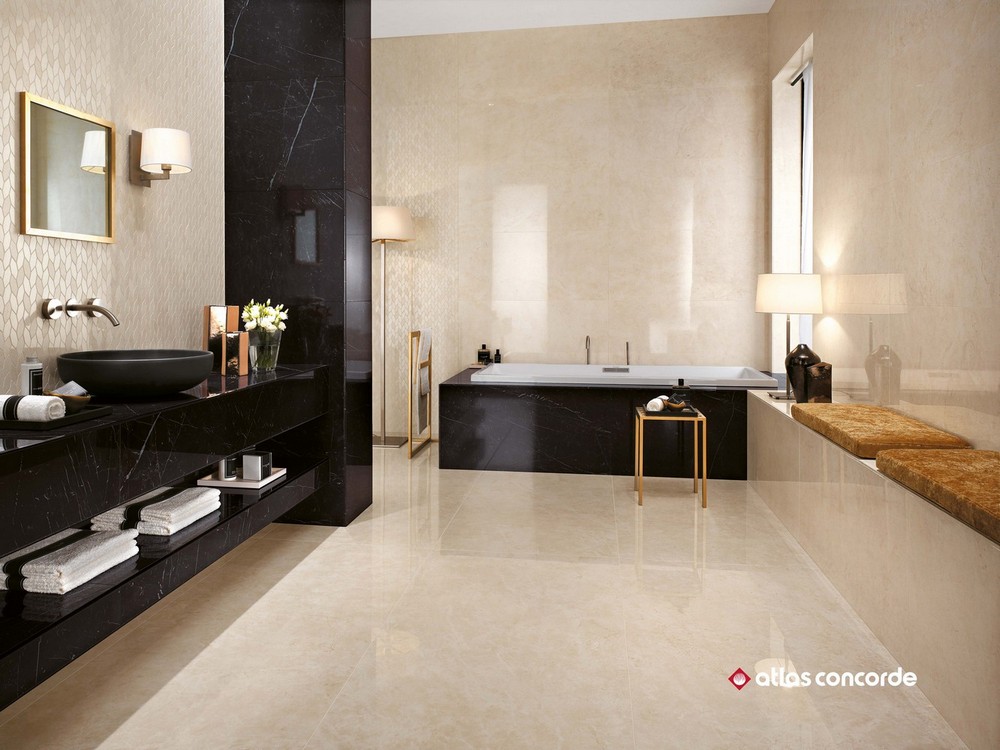 Керамическую плитку 60×120 см толщиной 20 мм можно укладывать на грунт без использования клевых растворов. Широкоформатный керамогранит толщиной 6 мм также доступен в трех размерах: 120×278 см, 160×160 см и 160×320 см. Особыми элементами коллекции для облицовки лестниц стали ступени, плинтусы и бордюры. При оформлении интерьера частных домов или общественных помещений, в маленькой ванной комнате или большом холле совершенство в исполнении текстуры мрамора и камня произведет одинаковый эстетический эффект. Великолепные эксплуатационные характеристики, высокая прочность, влагостойкость и морозостойкость характеризуют коллекцию керамогранита Atlas Concorde Marvel Stone. Он удобен и прост в обслуживании, не теряет цвет со временем и устойчив к истиранию в течение всего срока его использования.