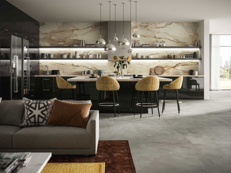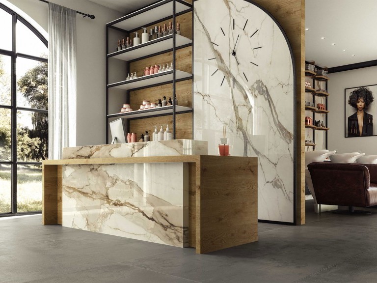 Плитка выполнена в двух вариантах покрытия – шлифованном и сатинированном. Каждое из них имеет свои особенности. Так, шлифованная поверхность состоит из матовых и глянцевых участков, что придает всей фактуре поверхности эксклюзивный вид. Что касается сатинированного покрытия, то оно выполняется с помощью кристаллов минеральных солей и придает особый вид поверхности керамогранита – шелковистый и чрезвычайно элегантный. Бренд предложил сдержанную палитру из белых, черных, серых, бежевых цветов в нескольких оттенках. Вы можете выбирать любую расцветку для однотонной отделки. Но есть и альтернатива – грамотное сочетание оттенков в интерьере создаст изумительный эффект, придавая всему пространству глубину и выразительность.